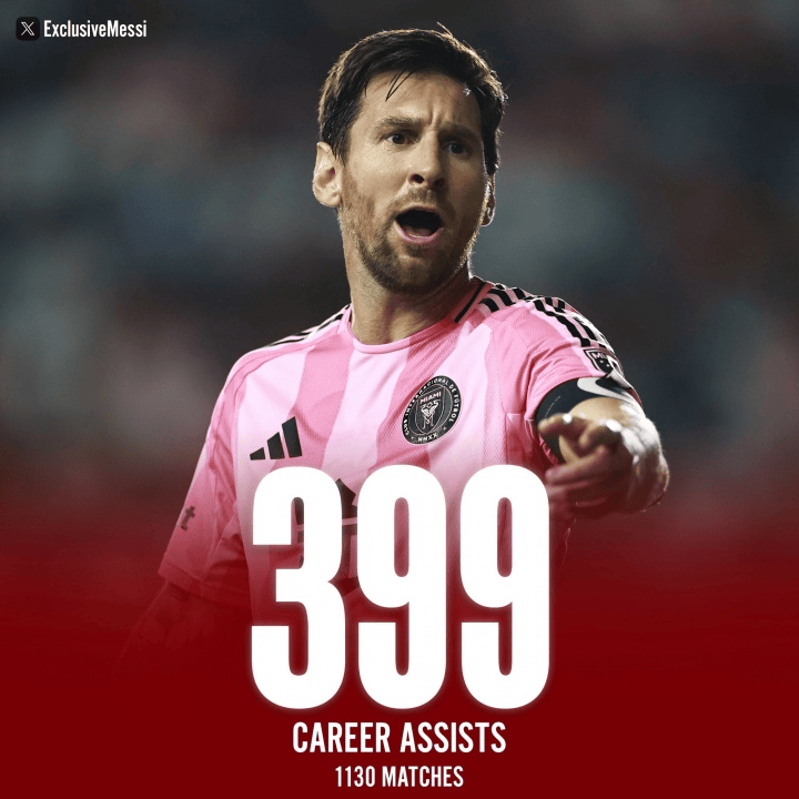 阿根廷人在本场比赛还贡献了1次助攻,这是他职业生涯第399次助攻,距离400次助攻仅有一步之遥。