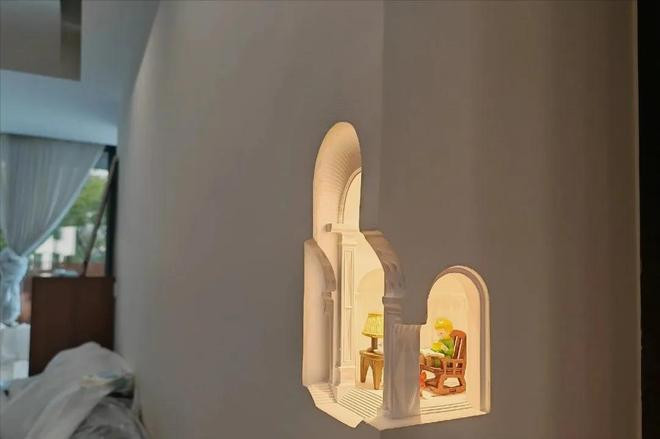 只要在做水电时,将孔洞和电源好,后期直接买上壁灯装上后,让师傅细节心点做墙面,完工后的效果,可以说绝了,很温馨、很神秘。